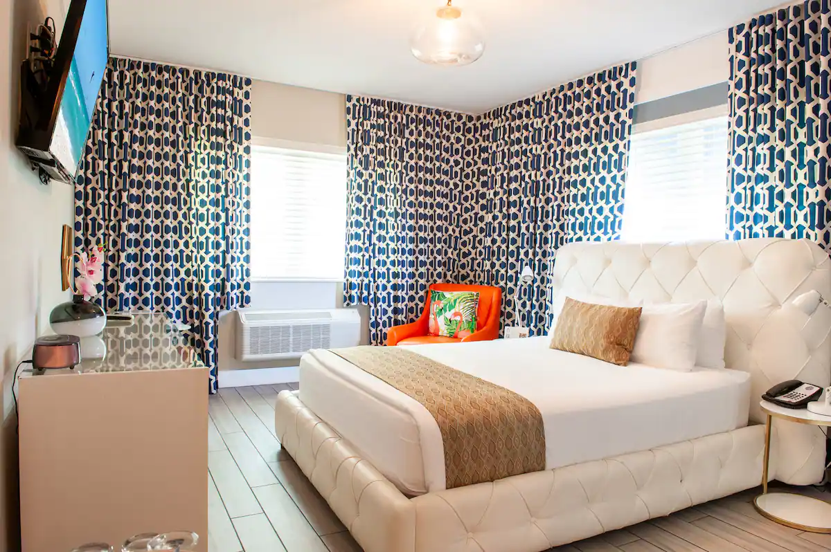 El Oceanside Hotel en Miami Beach es un alojamiento de estilo boutique conocido por su mezcla de comodidades modernas y encanto junto a la playa. Los huéspedes pueden disfrutar de wifi gratuito, servicios de playa, deportes acuáticos cercanos y actividades al aire libre. El hotel ofrece comodidad íntima y se encuentra a solo una cuadra de la playa.